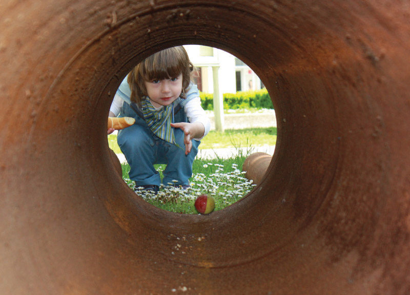 Monument to the Emptiness (3 and a Half Tone of Emptiness) is a sculpture which on the one hand, refers to circular void on the facade of the representative gallery building. Voids of the cylindars of this sculpture are facing circular cylindrical hole at the facade. They are located in the city park, where once stood fortress walls which were demolished in the 19th century. The sculpture on the other hand, also refers to the void that was left behind missing gigantic walls. Also, the media and the city council launched a great discussion about the monument to Croatian defenders. This work refers also to political part of the current state of emotional compaction which arises from question about installation the monument, and severity of pain and emotional gaps left by those who left us suddenly.